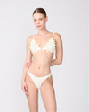 The Bianca Bikini Top presents a classic silhouette reinterpreted with delicacy. This triangle bikini features 3D flowers around the bust, adding a fresh and charming touch to a minimalist and timeless piece.